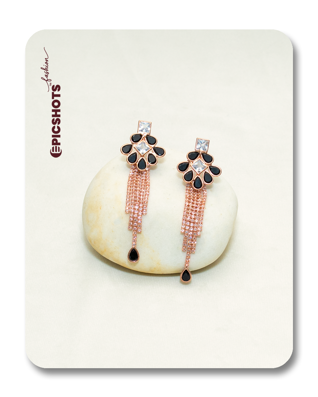 Turn heads at every event with these rose gold-plated black fringe earrings, featuring sleek black teardrop stones and sparkling cubic zirconia. The multi-strand tassel design creates dramatic movement and elegance, making these drop earrings ideal for party wear, festive occasions, weddings, or evening outings. Their blend of modern glam and classic details suits ethnic, fusion, or contemporary outfits.